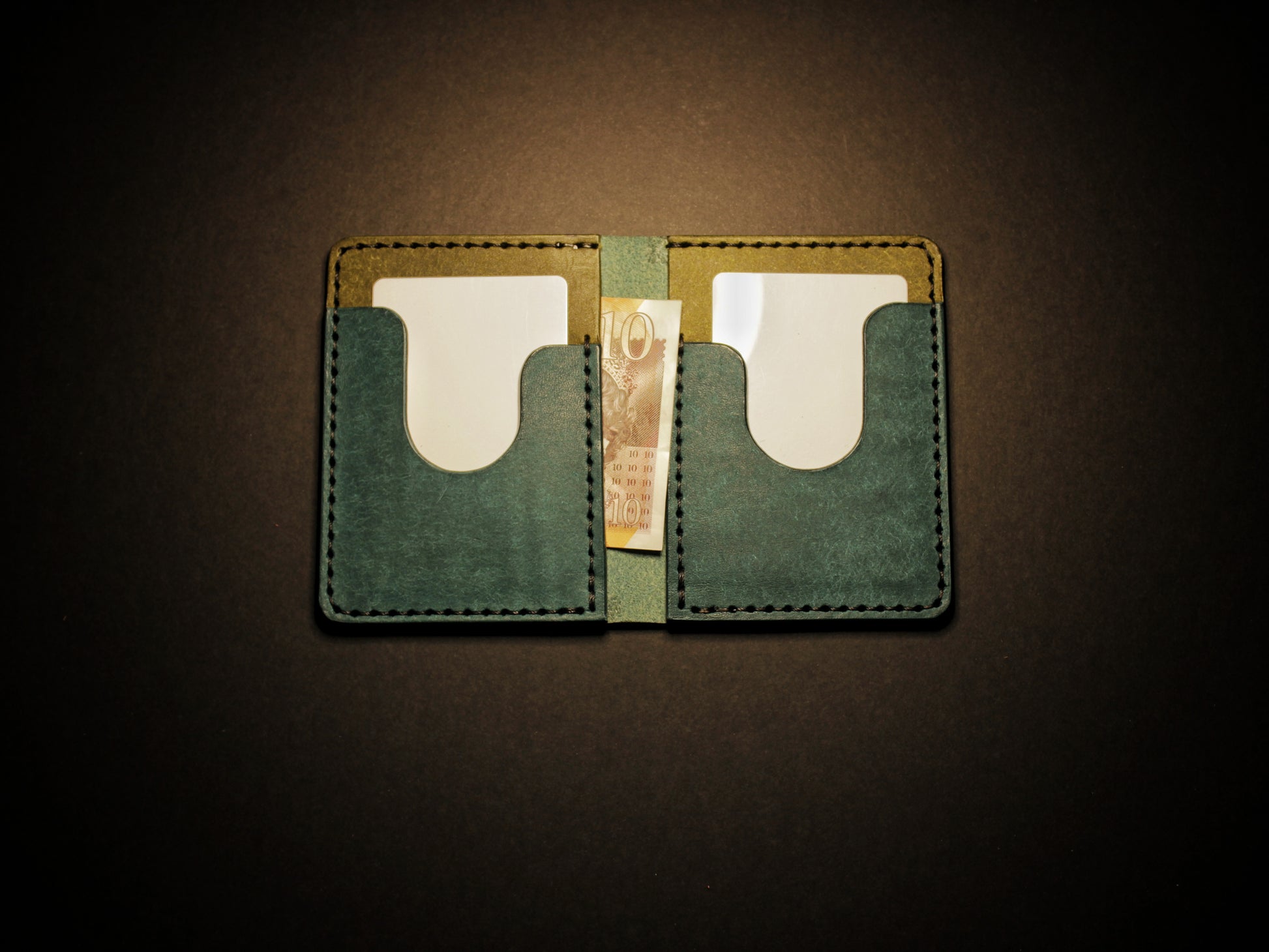 "Swarm" Leather Bifold Wallet - Blue & Green
