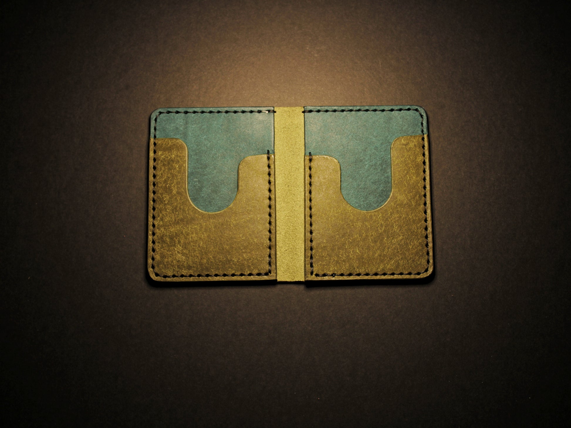 "Swarm" Leather Bifold Wallet - Green & Blue