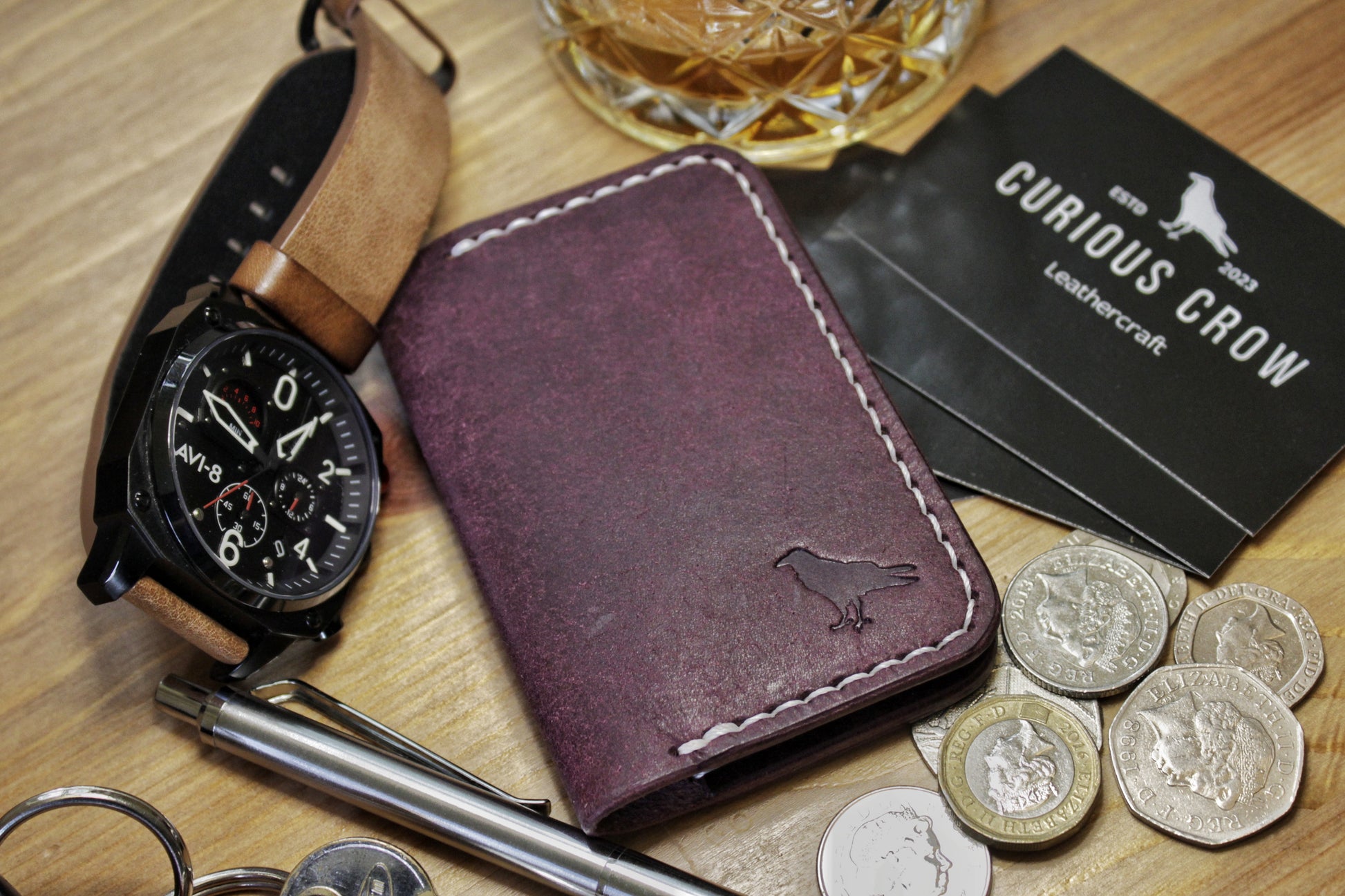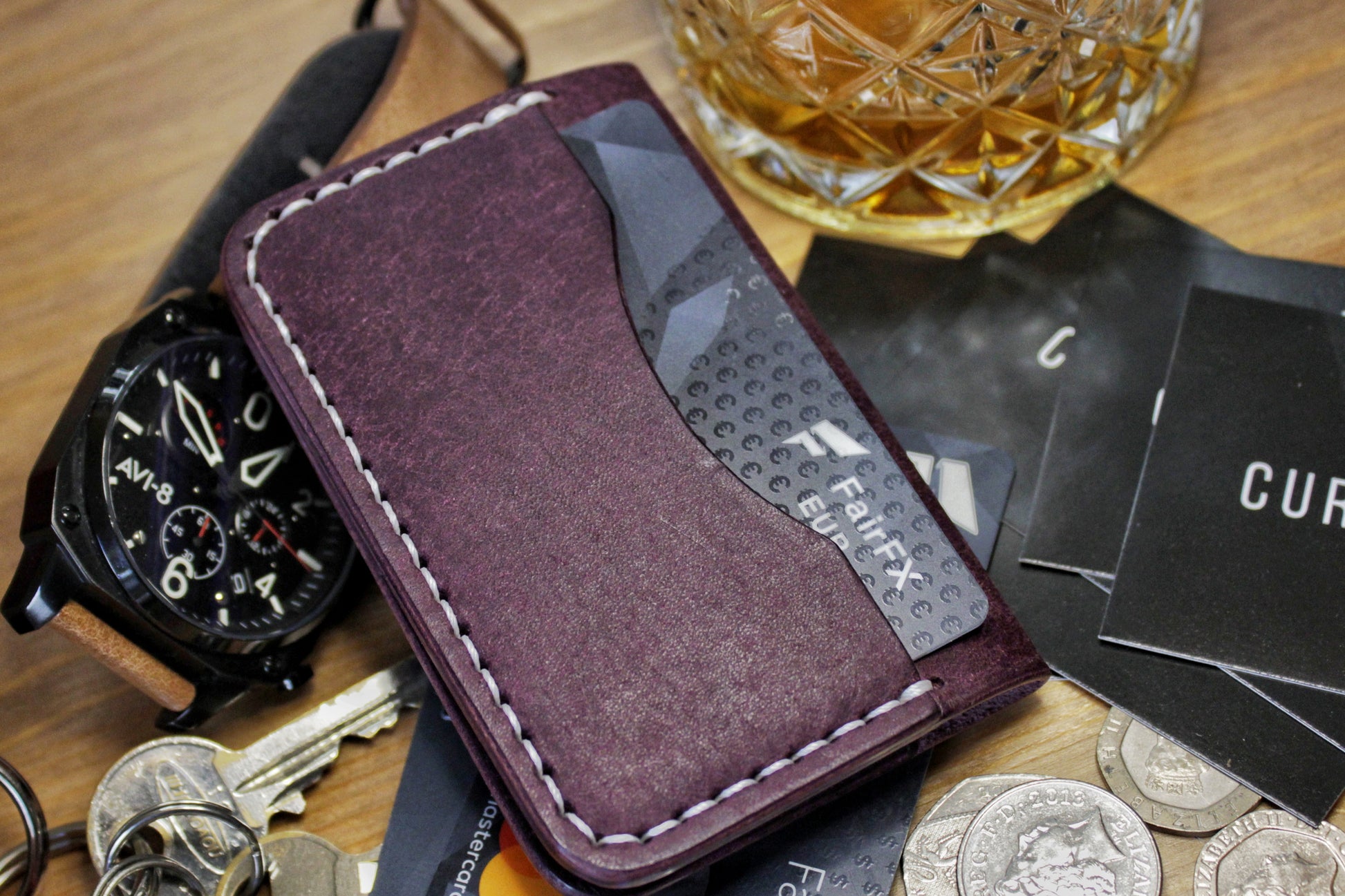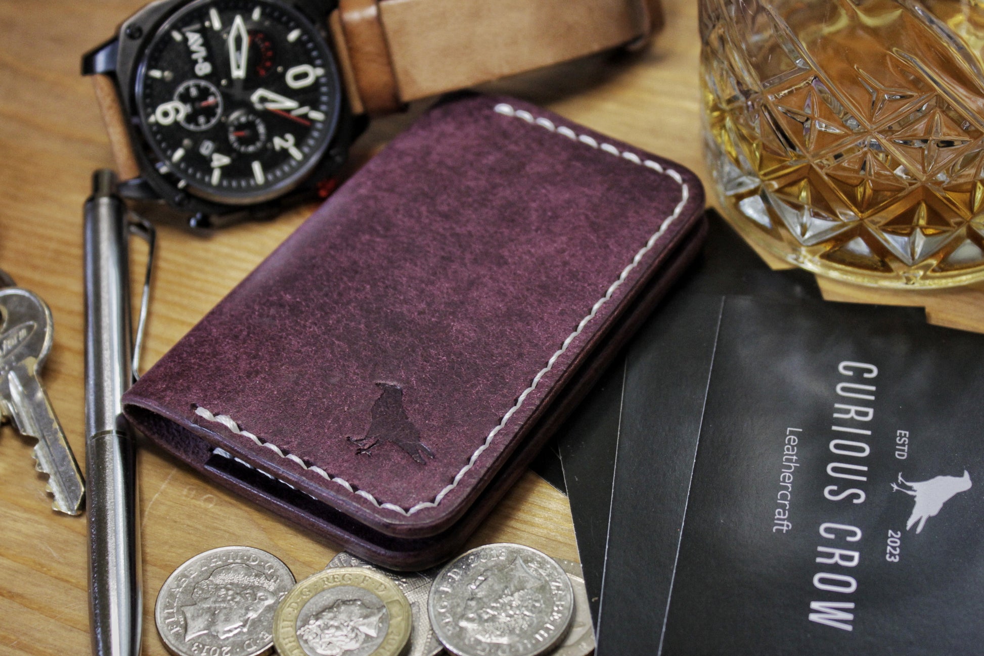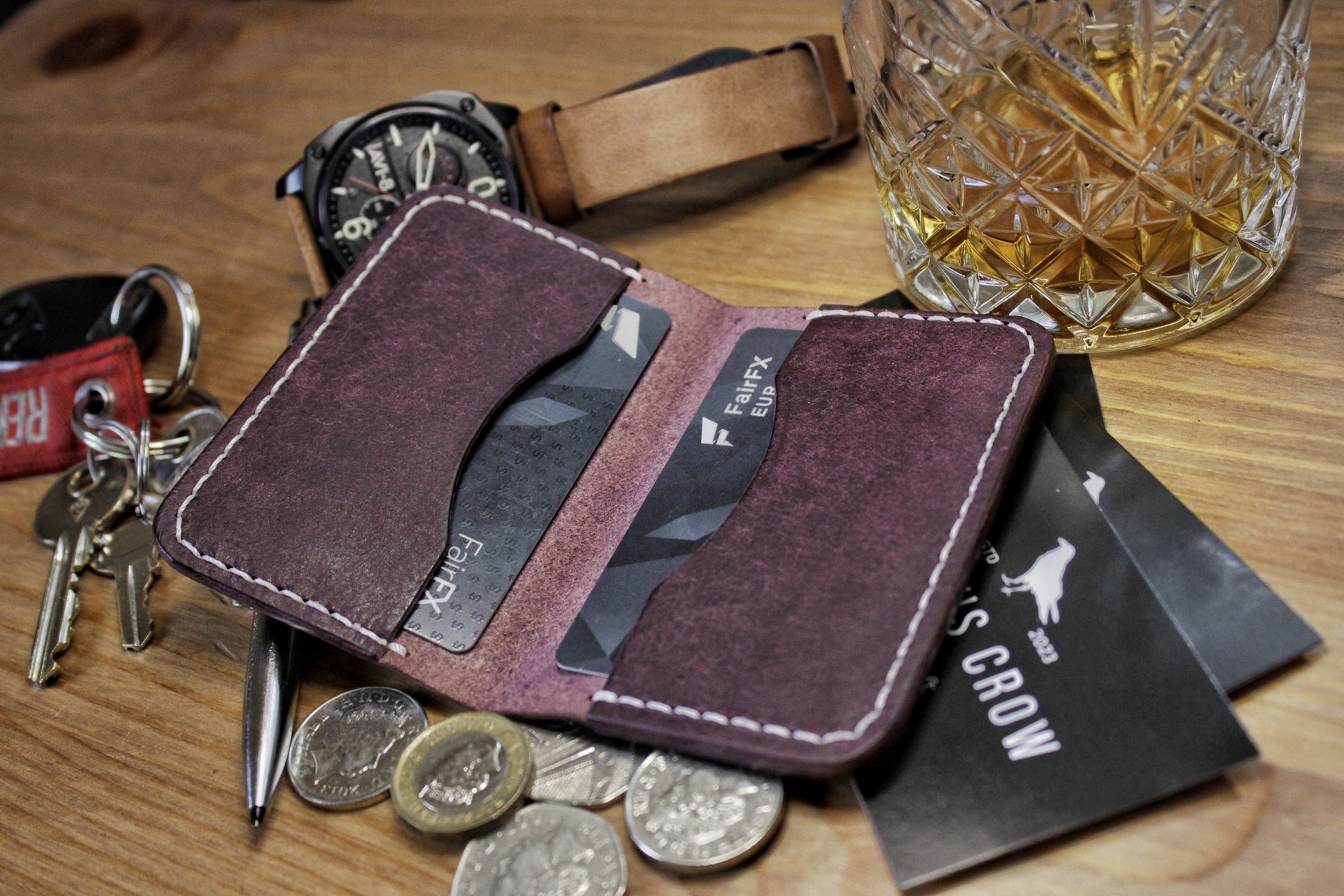 The Baron - Leather Bi-fold Card Holder (Prugna Purple)