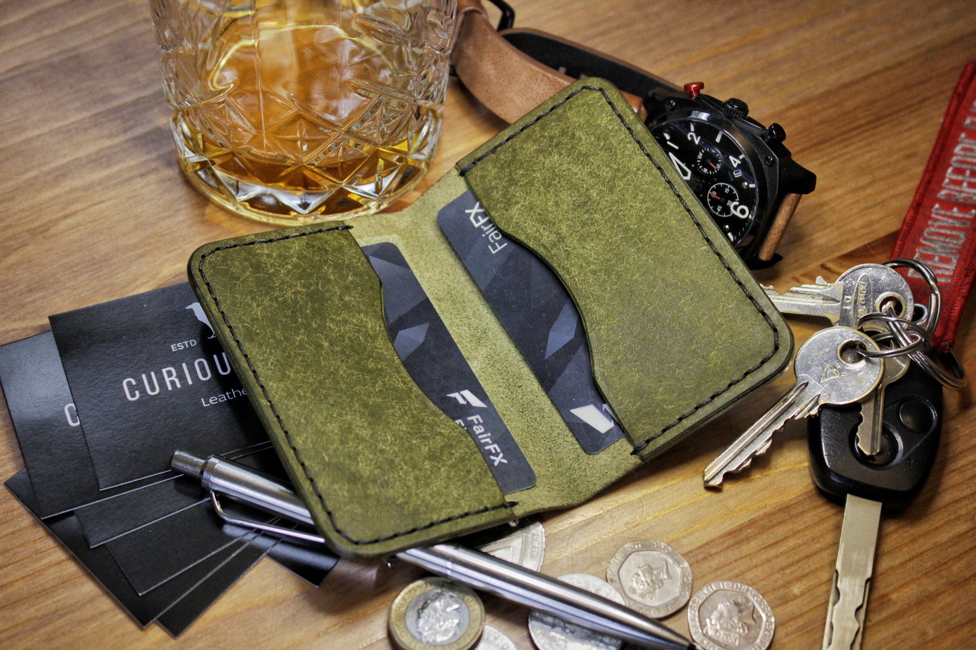 The Baron - Leather Bi-fold Card Holder (Oliva Green)