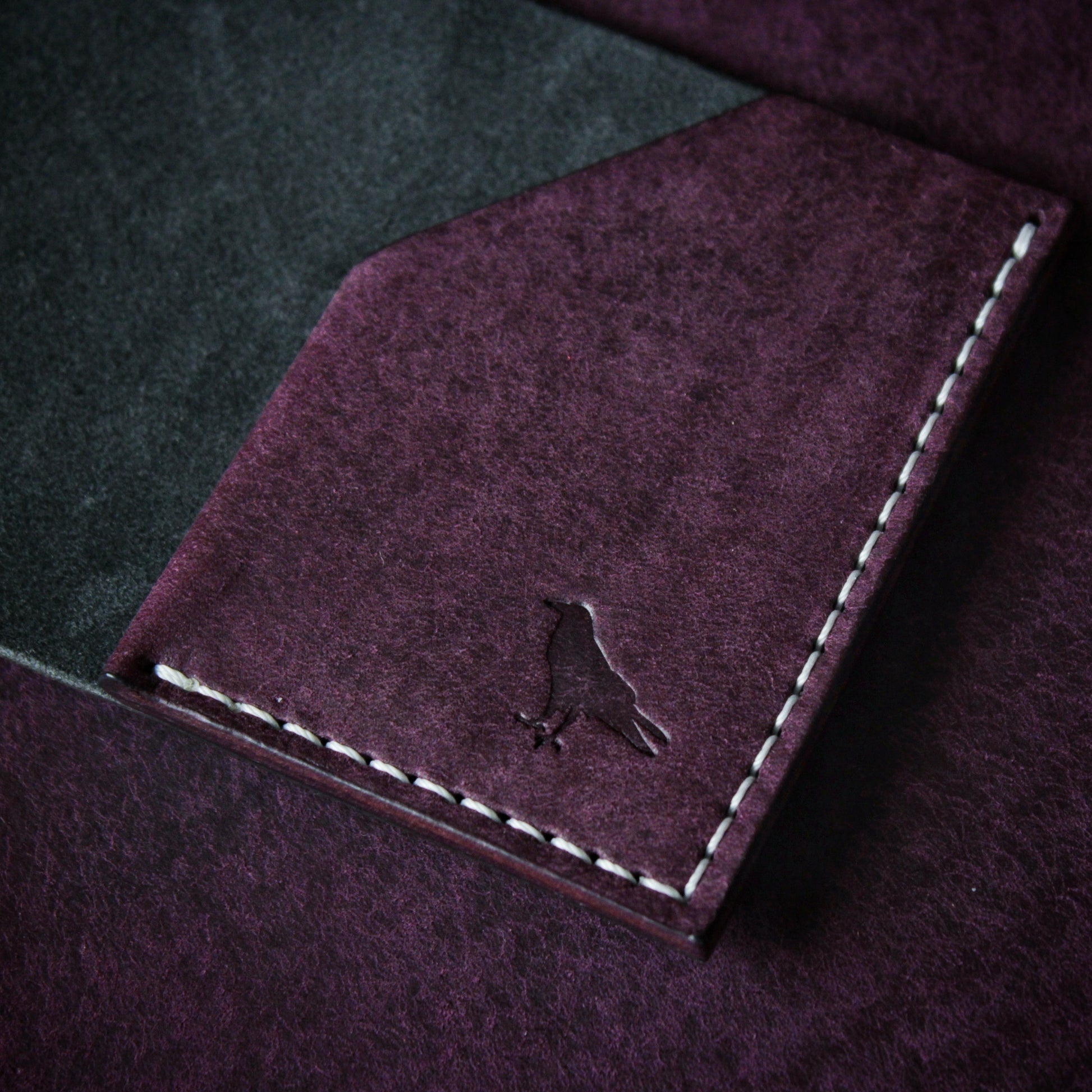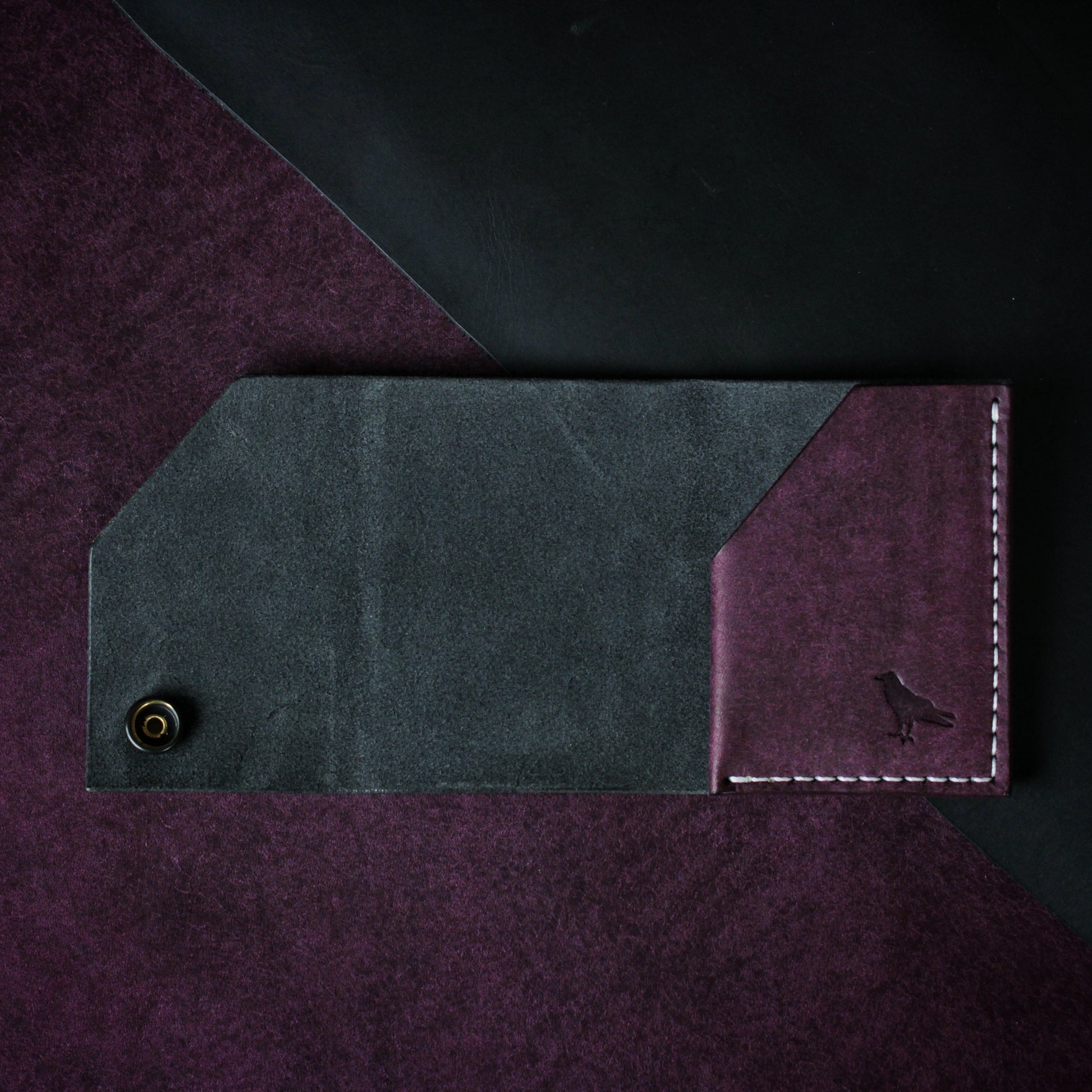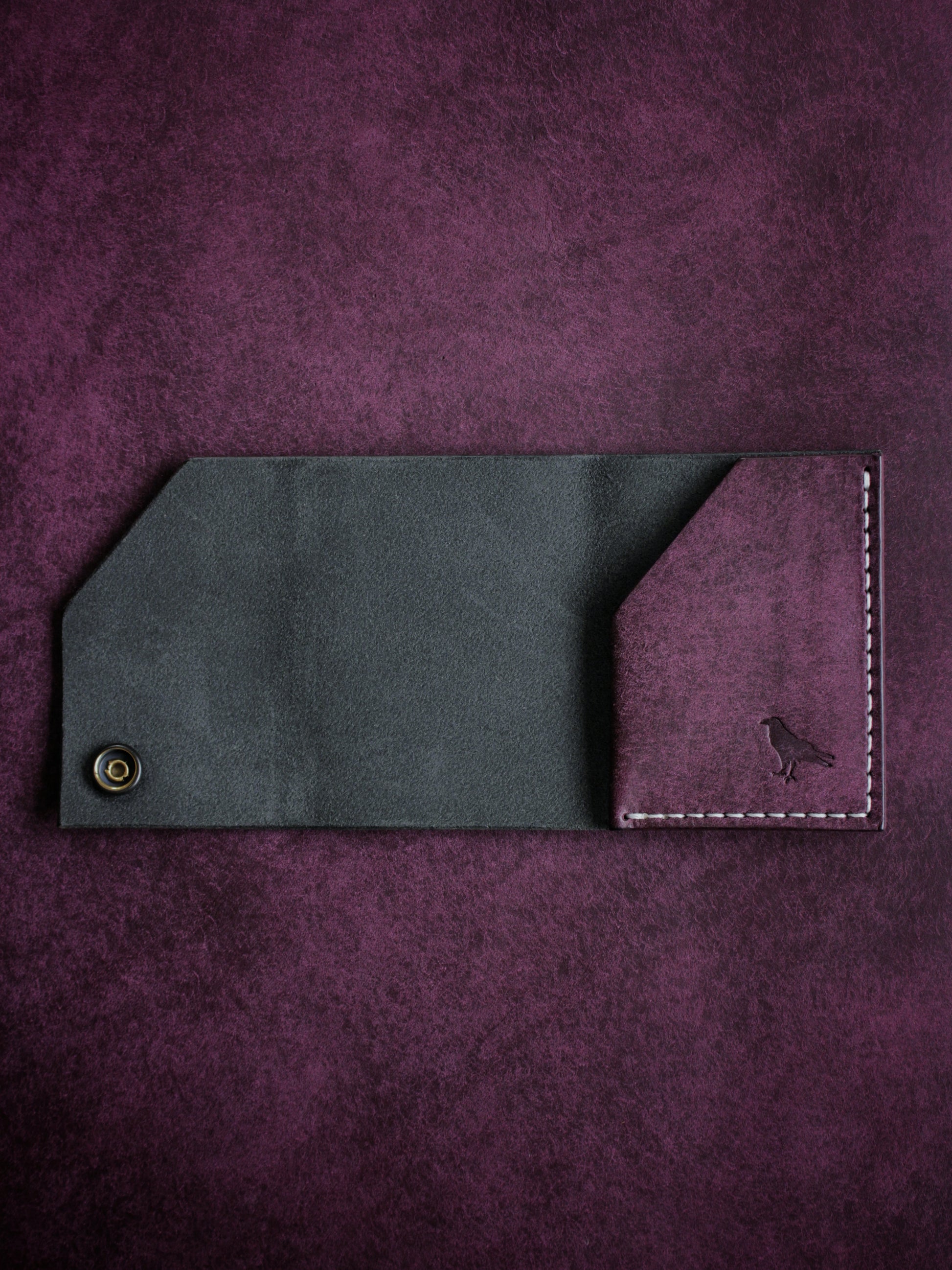 Handmade Full-Grain Leather Wallet - BLACK & PURPLE — Made in England by Curious Crow Leather.
