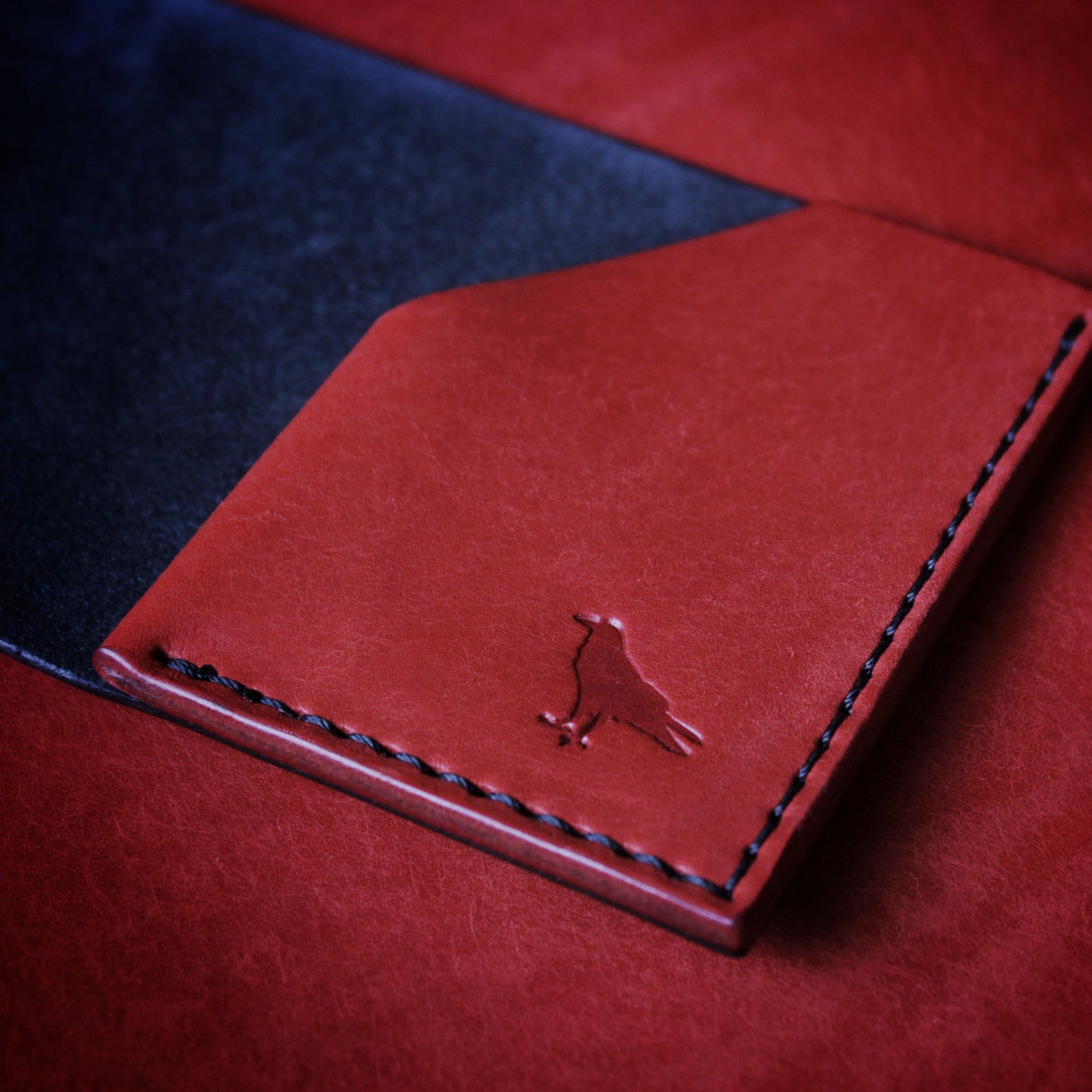 Handmade Full-Grain Leather Wallet - BLACK & RED — Made in England by Curious Crow Leather.