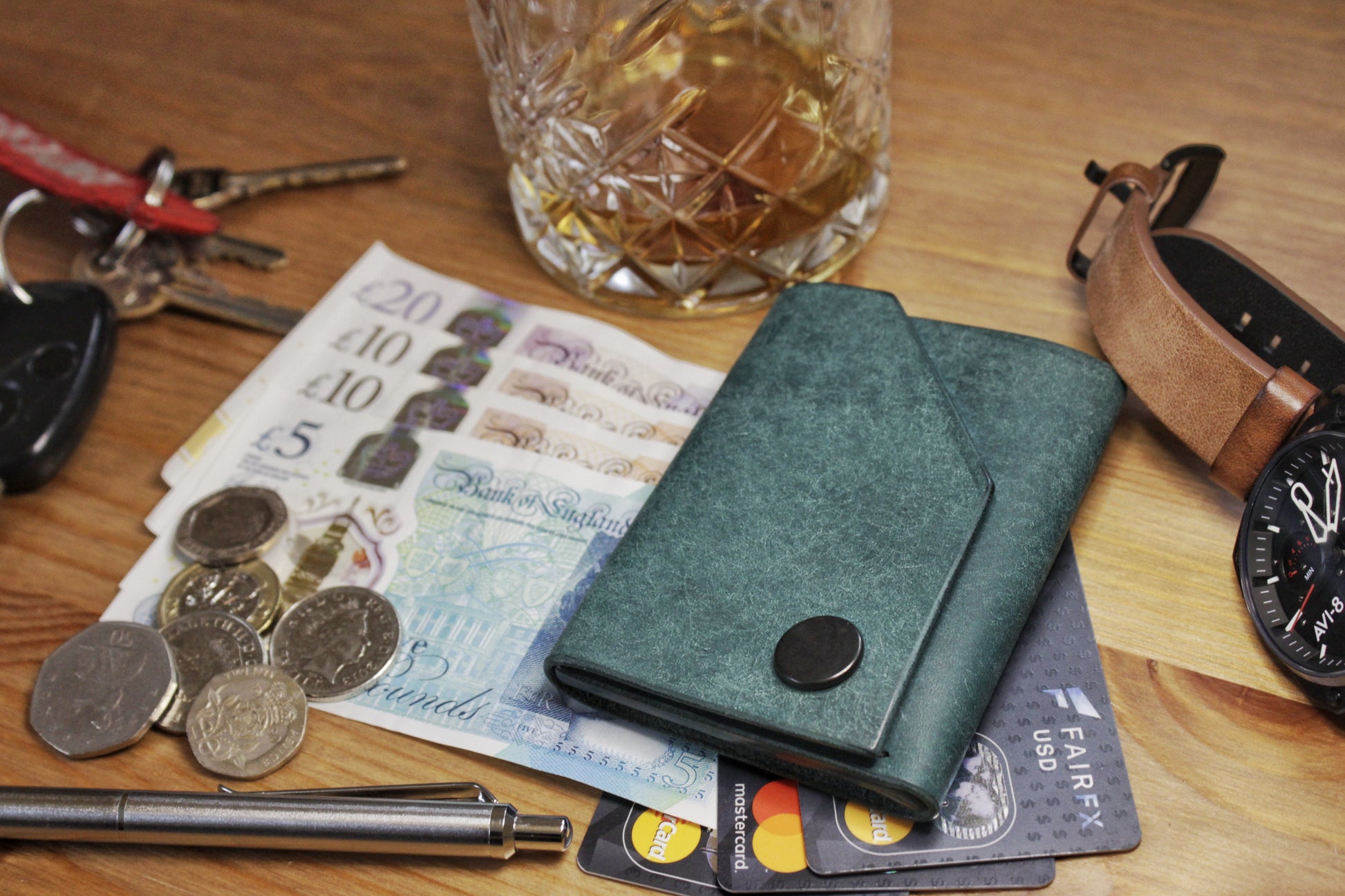 The Shroud is a simple, sleek and elegant twist on the traditional slim-line cardholder / wallet. Its unique wrap-around design features a spacious central pocket for up to 8 cards and a back slip for cash notes of any currency, including GBP and USD. Perfect as an everyday carry wallet to slip in a pocket, with a smart and functional design.