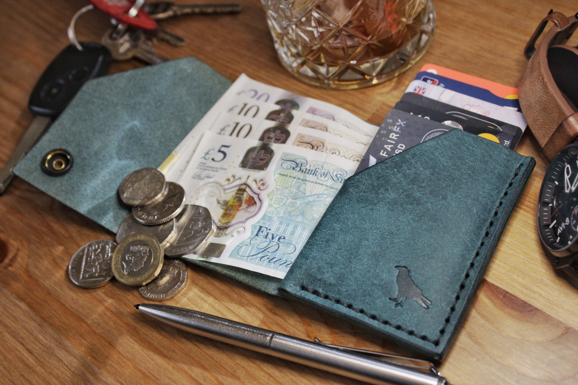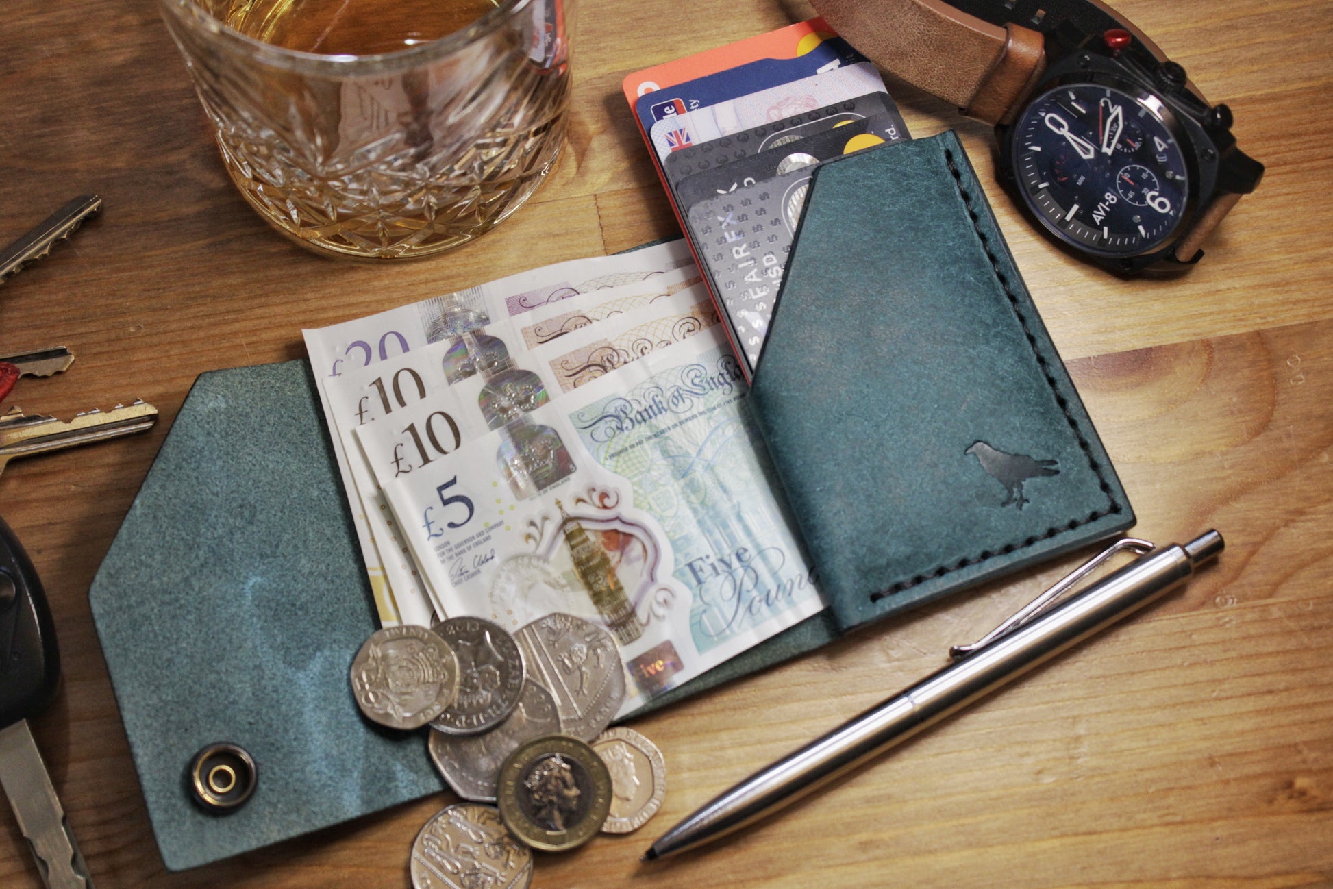 Materials: The luxurious Italian Badalassi Pueblo leather featured for this everyday carry comes in a cool teal tone, with a soft suede-like feel when new. Slipped in and out of pockets, it will soon develop a unique shining patina and age beautifully with use. Fully handcrafted in the UK, using traditional techniques and high quality materials.