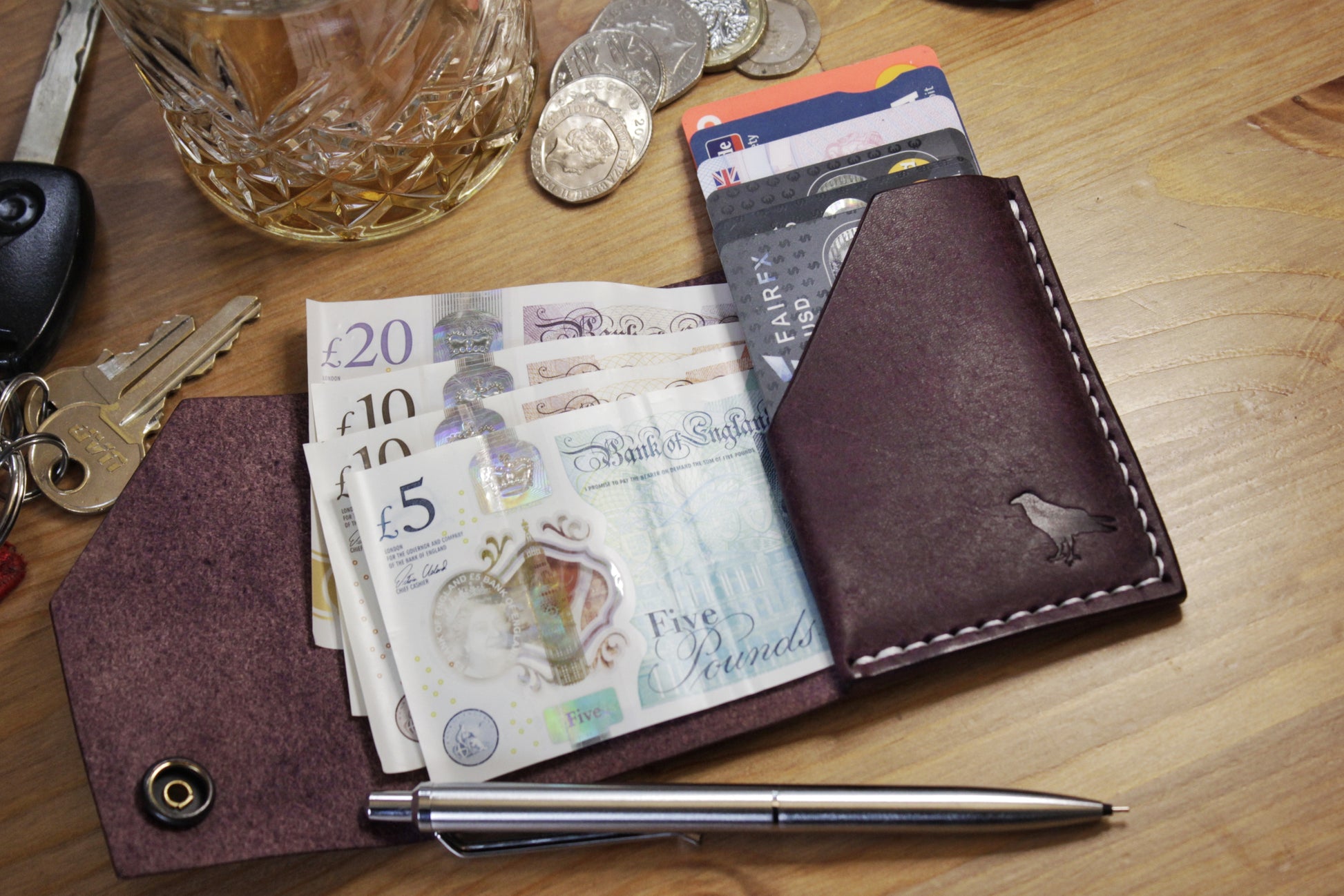 The Shroud is a simple, sleek and elegant twist on the traditional slim-line cardholder. Its wrap-around design features a spacious central pocket for up to 8 cards and a back slip for cash notes of any currency, including GBP and USD. Perfect as an everyday carry wallet to slip in a pocket, with a smart and functional design.